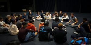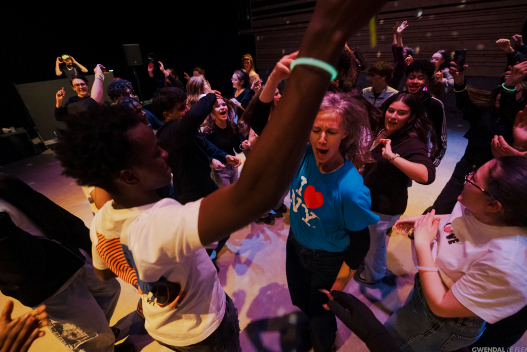 Dans une optique d’inclusion et d’échanges, les lycéen.nes de VHB ont ensuite rencontré des élèves d’UPE2A du lycée Jean Jaurès et des jeunes de l’EREA Magda Hollander de Rennes lors d’une journée d’atelier au TNB le 7 décembre sous la direction d’Andrew Graham (danseur, chorégraphe) et de Béatrice Pedraza (metteuse en scène, formatrice).