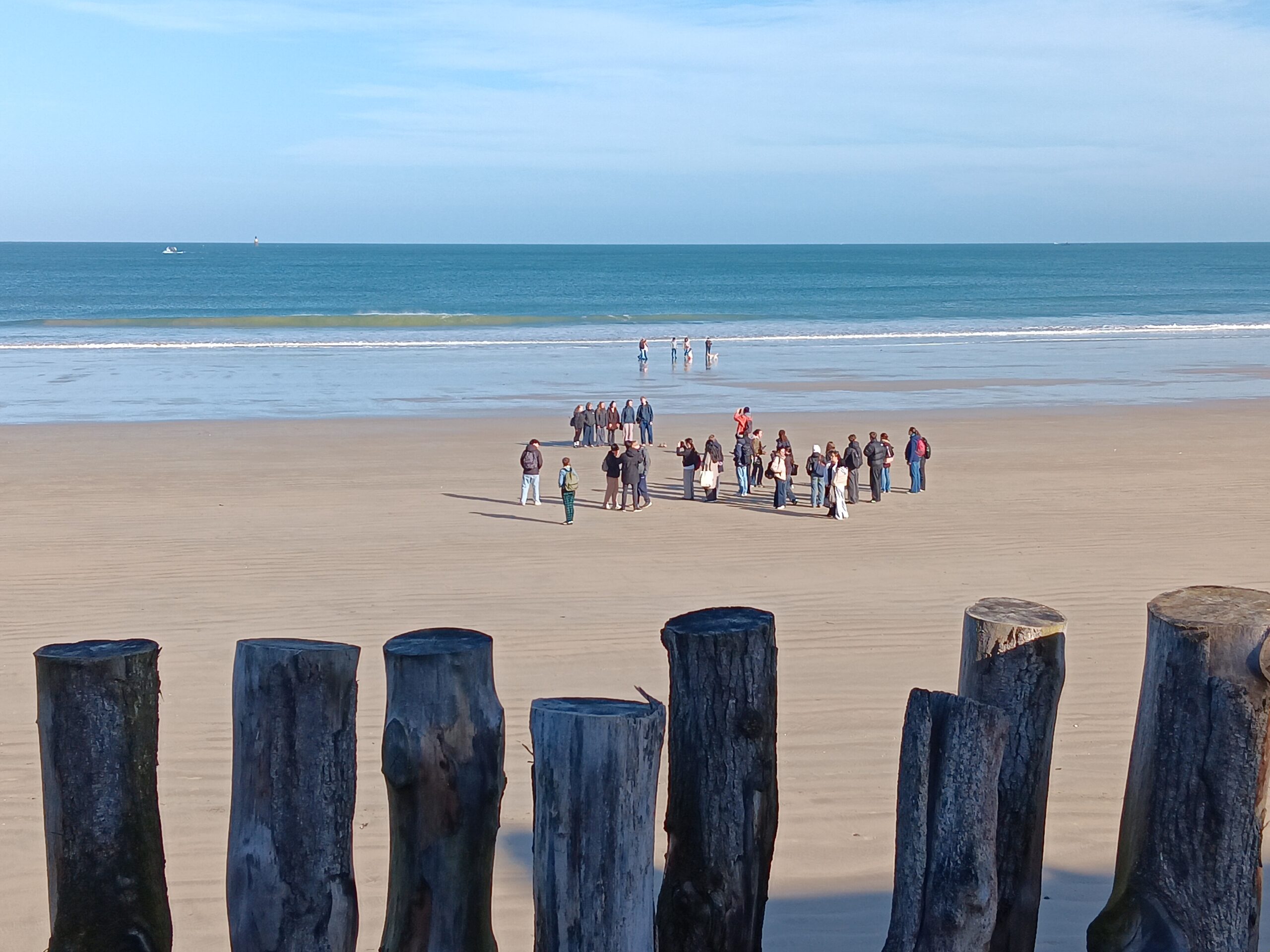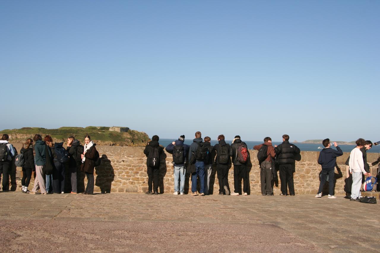 (photos : la traditionnelle photo du groupe au complet devant le château de Saint Malo avec les 18 élèves français [201-202-203] et les 19 élèves allemands de nos deux lycées partenaires : « Ohm » et « Emil von Behring » / promenade sur le sillon / promenade sur les remparts)