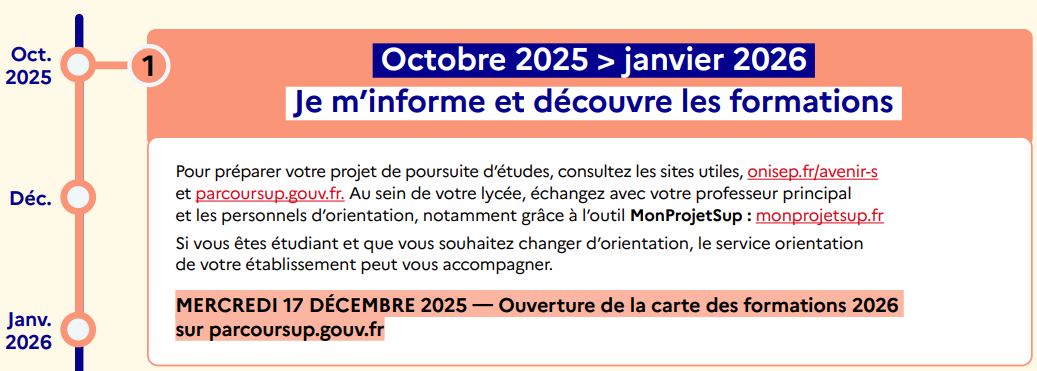 – 17 décembre 2025 : ouverture du moteur de recherche des formations Parcoursup 2026.