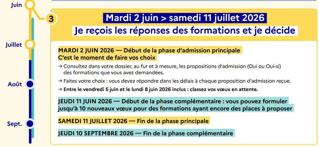 – 11 juin 2026 : début de la phase complémentaire (possibilité de formuler de nouveaux vœux).