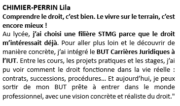 CHIMIER-PERRIN Lila | STMG | BUT3 Carrières Juridiques | C201 | ||