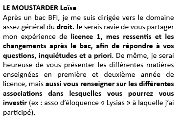 LE MOUSTARDER Loïse | OIB spécialité HGGSP et HLP | Licence de droit | C102 | ||