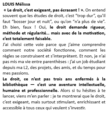 LOUIS Mélissa | Parcours général | Licence de droit à Rennes 1 ( Licence 3 année 2025/2026) | D208 | ||