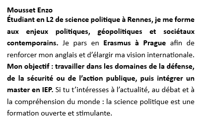 TROLET-QUERE Kaelig | Bac spe maths géopolitique | Licence de science politique à Rennes 1 | C204 | ||