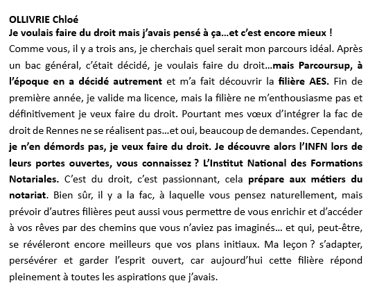 OLLIVRIE Chloé | Formation Générale | L1 AES puis réorientation en BTS collaborateur juriste notarial | C201 | ||