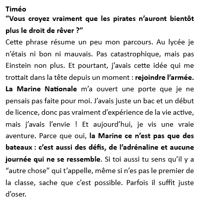 Timéo | Filière générale | Militaire | École des matelots (Marine Nationale) | C101 | |