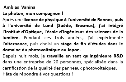 Ingénieure Recherche et Développement au laboratoire de certification photovoltaïque de Certisolis