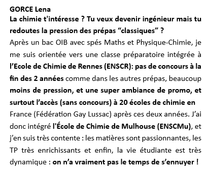 Classe prépa intégrée à l’école de chimie de Rennes (ENSCR), Première année d’ingénieur à l’école de chimie de Mulhouse (ENSCMu)