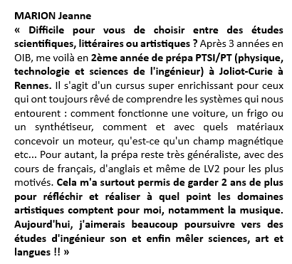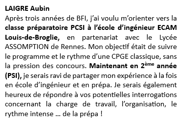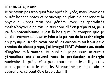 Prépa PCSI (puis PC) à chateaubriand (Rennes) puis école d'ingénieur grandes mines IMT Atlantique (Nantes)